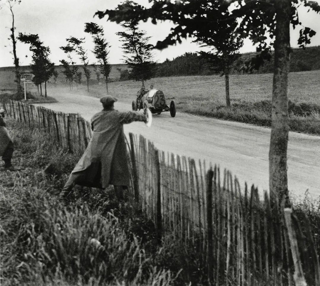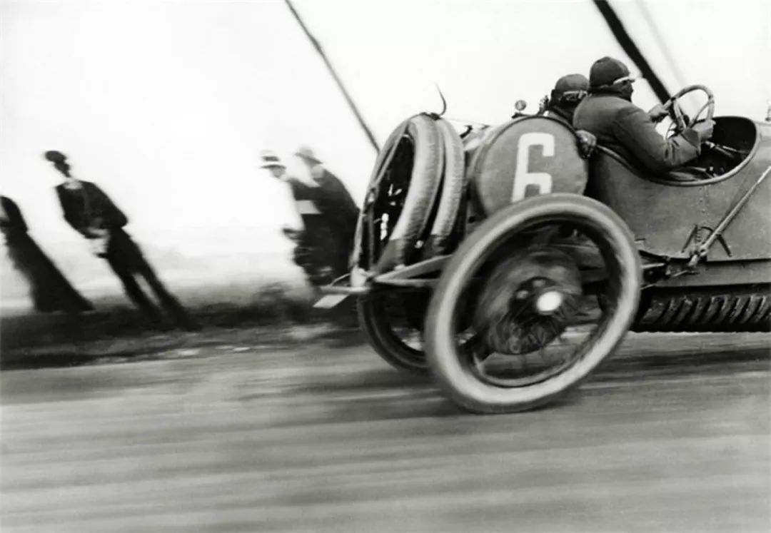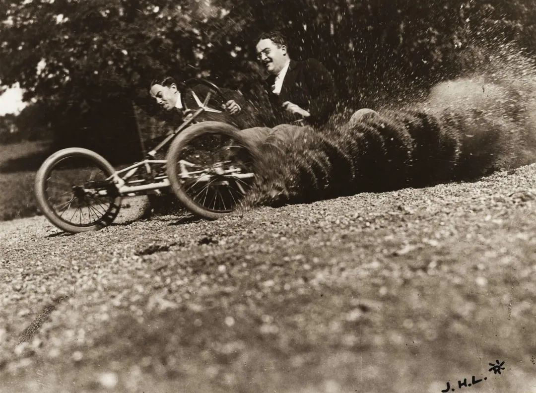 这个世界在永无止境地运动。无论是出于异想天开抑或是自视过高,拉蒂格的每一次奔跑试验,悉使用轮子或是翅膀以追求跑得更快、更远、更高。1912年,当他拍摄在A.C.F.格拉纳大奖赛(A.C.F.Grana Prix)中的德拉奇汽车(Delage Automobile)时,所有的事物都在移动:他焦平面快门上的一条窄缝同窗帘一般快速穿过成像平面,因此场景的某些部分比其他部分晚了零点几秒。画面中的观众似乎在倾斜,车轮亦变了形。拍摄另一辆赛车时,拉蒂格提出了一种新的方法,那就是在移动自己的同时保持相机不动:“我拍摄它[每小时行驶18公里]时,稍微旋转一圈,以保持它在视野中。这是我第一次如此去做。”