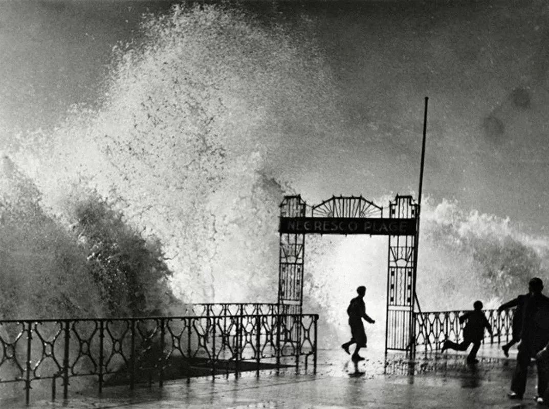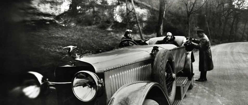他把相机举到离赛车不到一米远的地方,如此彻底破坏了比例,以至于远处的观众可能从另一个空间误入。他的身影在来袭的波浪前奔跑,在黑暗中被与他毫无联系的庞然大物所遮蔽。拉蒂格早期画作中,人物之间的生动关系已开始破裂,规范的空间时不时被破坏。