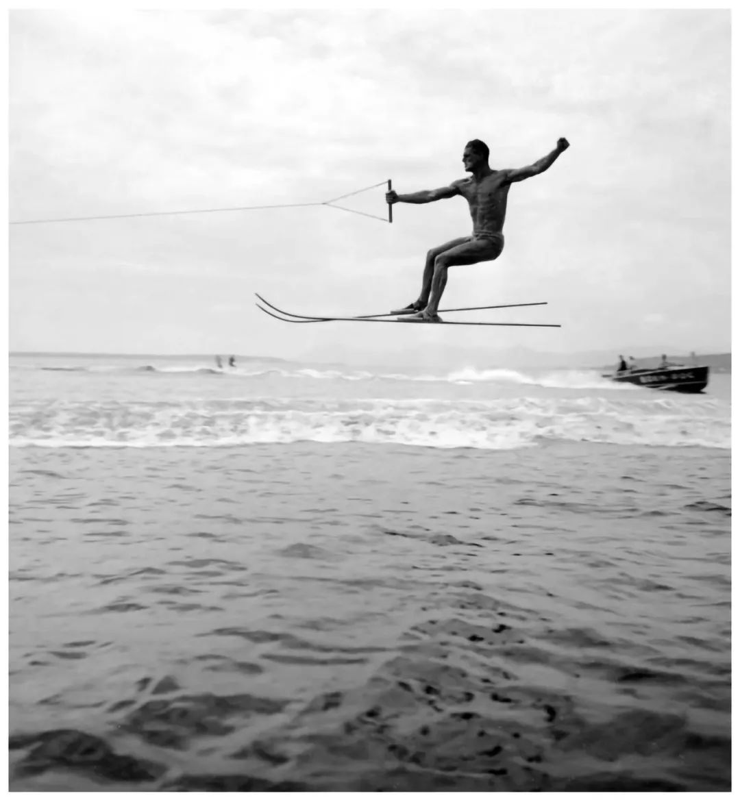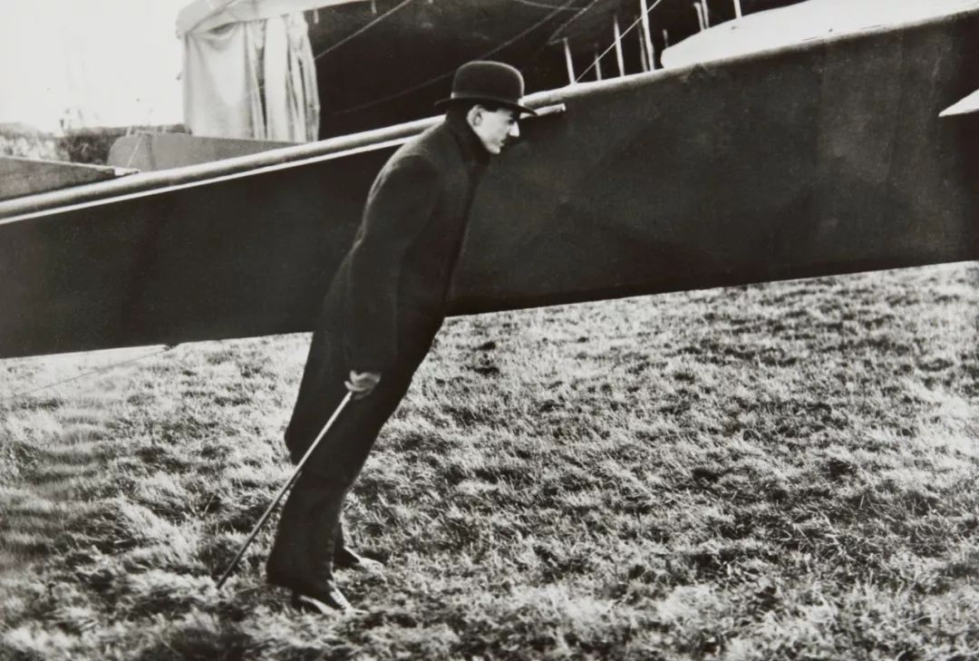 当他还很小的时候,就掌握了摄影构图,现在变得愈加老练。他用科卡普一耐特勒(Klapp-Nettel)双镜头立体相机拍摄了两张6×6厘米的照片,可以转换成单镜头格式的一张6×13厘米的照片。拉蒂格利用这细长的框架,平衡了不稳定的并置、不间断的海浪和坐在机翼上的神秘人物。