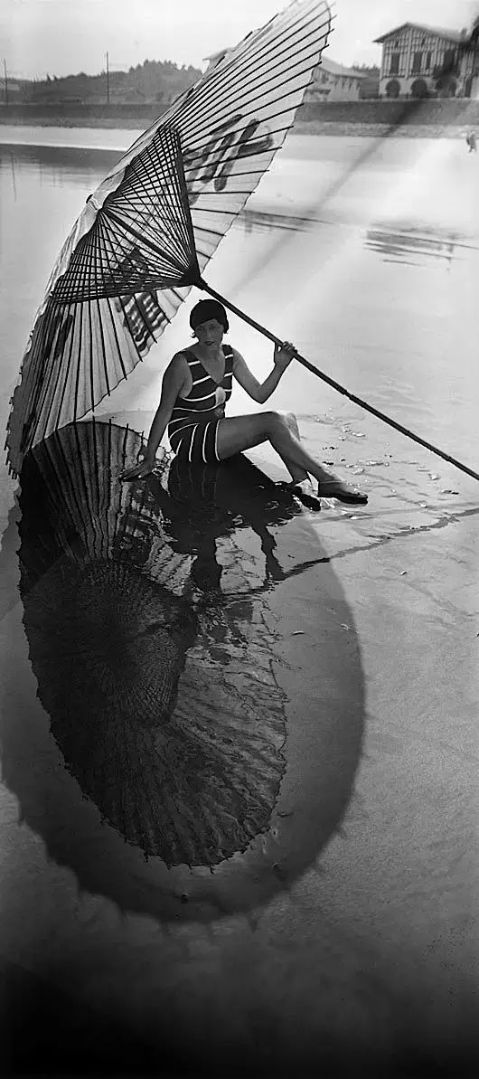 诙谐与创意,前卫与风情,以及阳光、风、慵懒和梦幻构成了拉蒂格相机里的世界——这个世界有酷炫的汽车,优雅的阳伞,以及海滩上穿着白色裤子的悠闲的人们。没有人在那里哭泣,每一个人的欲望俱能得到满足。唯一能够让人想起悲伤的或许只有大海那浩瀚而无情的孤独。