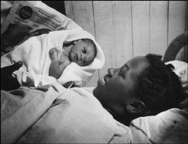 《助产士(midwife)》是尤金·史密斯十分著名的专题之一,于1951年12月3日刊登于《LIFE》杂志上。为了拍摄这个专题,尤金·史密斯亲身融入了医院跟着助产士学习了六个礼拜,之后他挑选了一位黑人助产士默德·卡伦(Maude Callen)进行跟踪拍摄。默德·卡伦是一位有执照的助产士,她为北卡罗来纳州的一个400平方英里的地区提供医疗保健和社会服务。“在内心深处,我搁着一件事,那就是美国的种族问题。我就挑上黑人助产士默德·卡伦作为拍摄对象,在这之前任何一本美国杂志都未出现过以黑人为主题的重要专辑。" 专题发表之后,使得默德·卡伦成为了民间英雄,民众纷纷捐款帮助默德·卡伦在北卡罗来纳州建立了诊所。