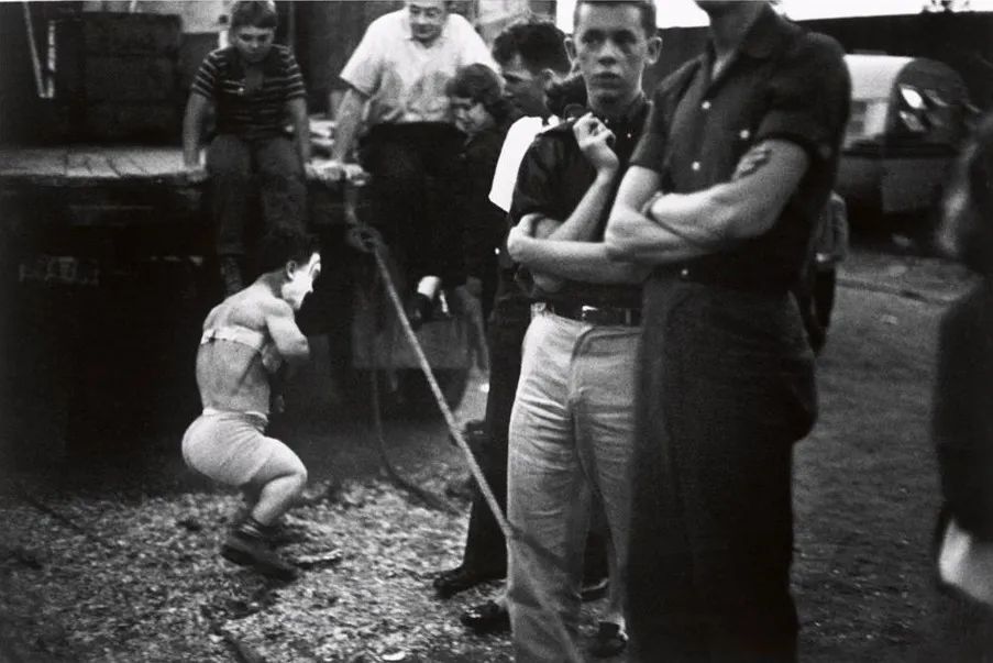 我回到了纽约的街头,特别是下东区街道,那里的居民多为移民。1958年初,我成为了马格南社的成员。我拍摄了一些系列作品,涉及伦纳德·伯恩斯坦(Leonard Bernstein)、中央公园和自由女神像。我还跟随了一个在新泽西扎营的小马戏团,特别关注其中一个名叫吉米(Jimmy)的小矮人。我在1959年完成了这个系列,然后开始接受一些委托工作:拍摄纽约的码头,艾娃·加德纳(Ava Gardner)的电影拍摄现场,以及卡纳维拉尔角(Cap Canaveral)发射的第一枚太空火箭的升空。