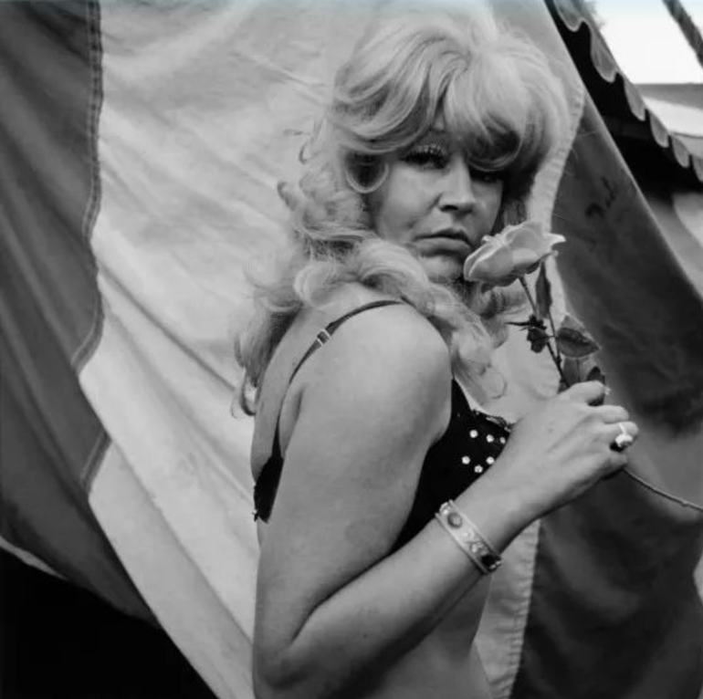 苏珊·梅塞拉斯的摄影作品充满了力量和情感。她擅长运用镜头捕捉那些能够揭示社会现象和人性本质的瞬间。她的作品中常常涉及到社会冲突、政治动荡以及人们的日常生活,通过对这些场景和人物的刻画,她成功地将观众带入了一个充满真实感和情感共鸣的世界。她在1972-1975的四年间跟随美国某一民间脱衣舞女大蓬车表演队进行拍摄,记录并反映了这群女性的生活与表演过程,集结成册出版于《狂欢节脱衣舞娘》(Carnival Strippers)一书中。