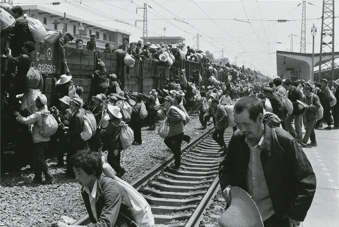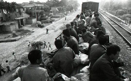 无论是在淮阳县的农村里,还是在武昌南站的站场工地上,只要汗水不停地从体内喷出来,我就能从一种惩罚性的启示中感受到自我生命力的存在。拍与不拍似乎于我无有多大区别,要紧的是挎着相机站在太阳下面,站在玉米地里,同撒化肥培土的妇人儿童在一起;站在灼人的枕木上,与铺路工作的民工在一起;或者躺在五楼的楼顶的防热层之上,一边诅咒着高温,一边期盼着微风…