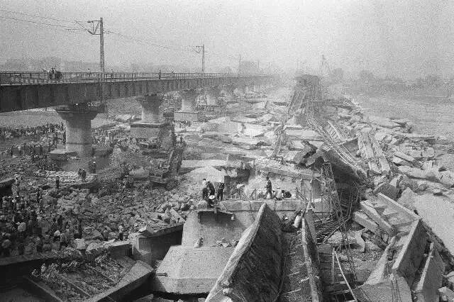 2002年6月,被洪水冲毁的灞桥铁路大桥,这是侯登科拍摄的最后一组照片。