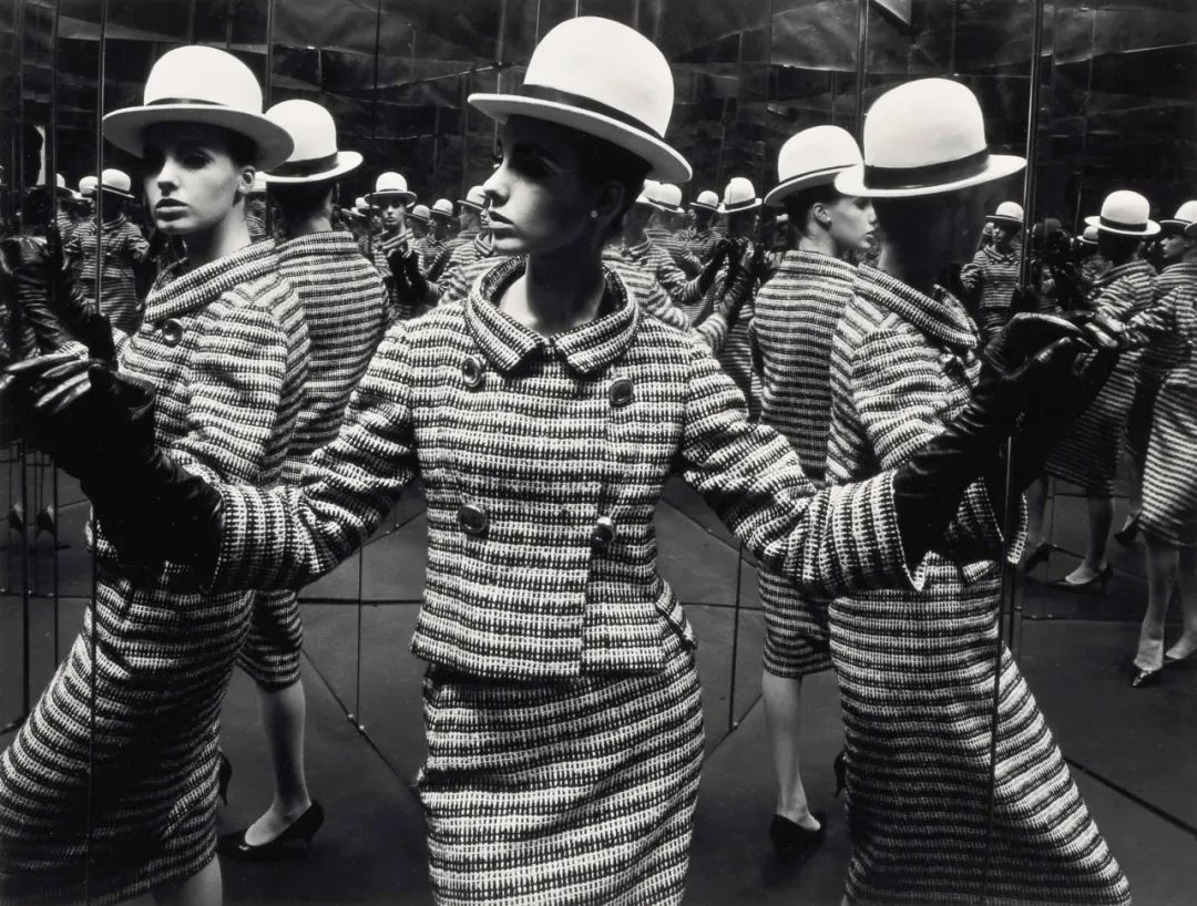 Nina and Mirrors, New York. 1962.《伊芙琳,伊莎贝拉,尼娜和镜子,纽约》1962年;Gelatin silver print. 明胶银盐;19 5/8 × 15 5/8" (49.8 × 39.7 cm);© 2024 William Klein.