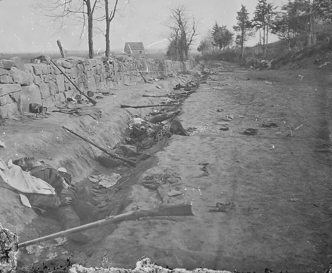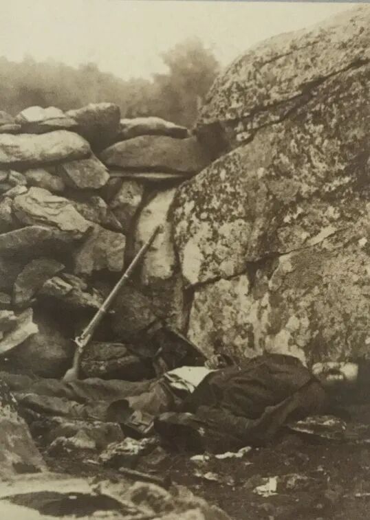1864年5月,佛州史波特斯凡尼亚郡府附近,Alsop太太家旁边的邦联军士兵尸体。 ↓