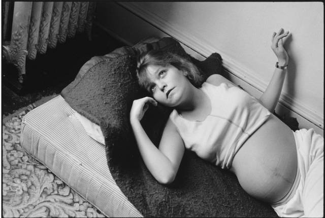 这幅震撼人心的人像作品是玛丽·艾伦·马克在为《生活》杂志工作期间拍摄的。照片来自《生活》杂志某一期的封面故事,故事报道了无家可归的达姆一家人,记录下他们为了生存,每一天所经历的挣扎。马克所拍摄的这幅照片,效仿了多罗西亚·兰格在 19 世纪 30 年代拍摄的著名照片《流浪的母亲》。这幅照片中的一对夫妻,温柔地相拥在一起。孩子们看向车外,眼神中流露出对未来生活的担忧。封面故事由安妮·法迪曼撰写,她在开篇中描述了一家人现在的居所,一辆 1971 年产的别克云雀轿车,没有引擎盖,在驾驶员的那一侧也没有窗户:座椅上的大部分坐垫装饰都不见了,如果这家人穿短裤,他们的腿上就会留下弹簧硌出的红印子。车里很难闻,被一只叫伦尼的斗牛犬破坏的一团糟。大部分时间,狗都被拴在右前座的靠颈上。伦尼是一种地位的象征,一种潜在的攻击武器,一件可爱的小玩意儿,也是对达姆一家曾经的证明。正如迪安所说,“证明是曾经辉煌过的。尽管所有人都不这么认为”。