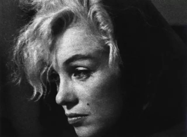 照片是梦露1962年1月参加在好莱坞制片人亨利.温斯坦的贝弗利山别墅举行的一次聚会上拍摄的。照片中的梦露全无人们常见的性感女明星的光彩。憔悴黯淡的面容,蓬乱的头发,失神的眼睛,睫毛上隐约还挂着泪珠……联想到她7个月后的自杀,这张脸上所显示的一切已足以令人心惊了。显然,纽曼没有心情再拿这个不幸的女人当创作素材。